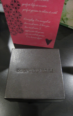 Sorry the pictures are so awful, but it is gorgeous in real life. I've always wanted a masculine yet feminine watch, and this one is perfect. Every time we shopped, I would always stop to look at Michael Kors watches, and I actually would have picked this one out myself. Luckily my smart husband consulted my best friend to make sure his selection was a good one :) If you'd like to see better photos, you can see the watch here.